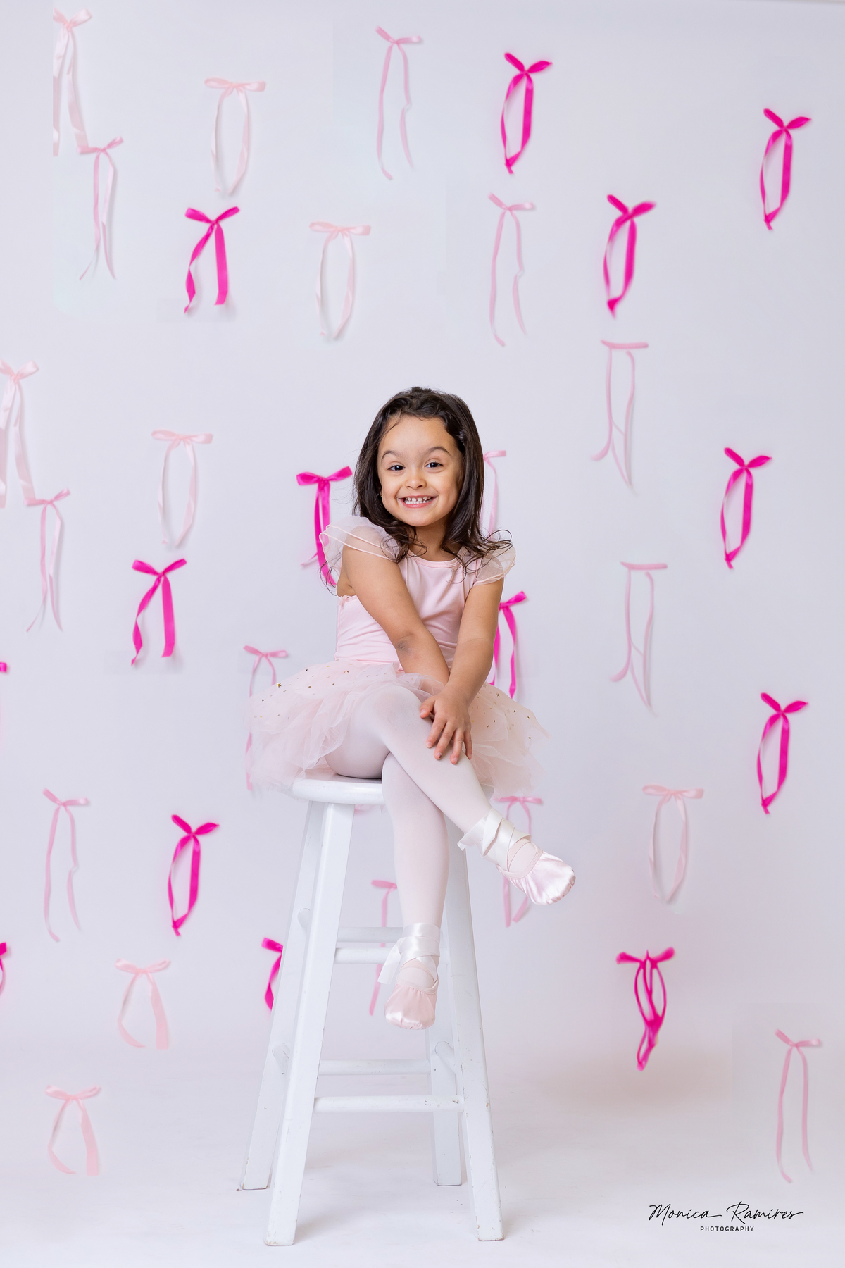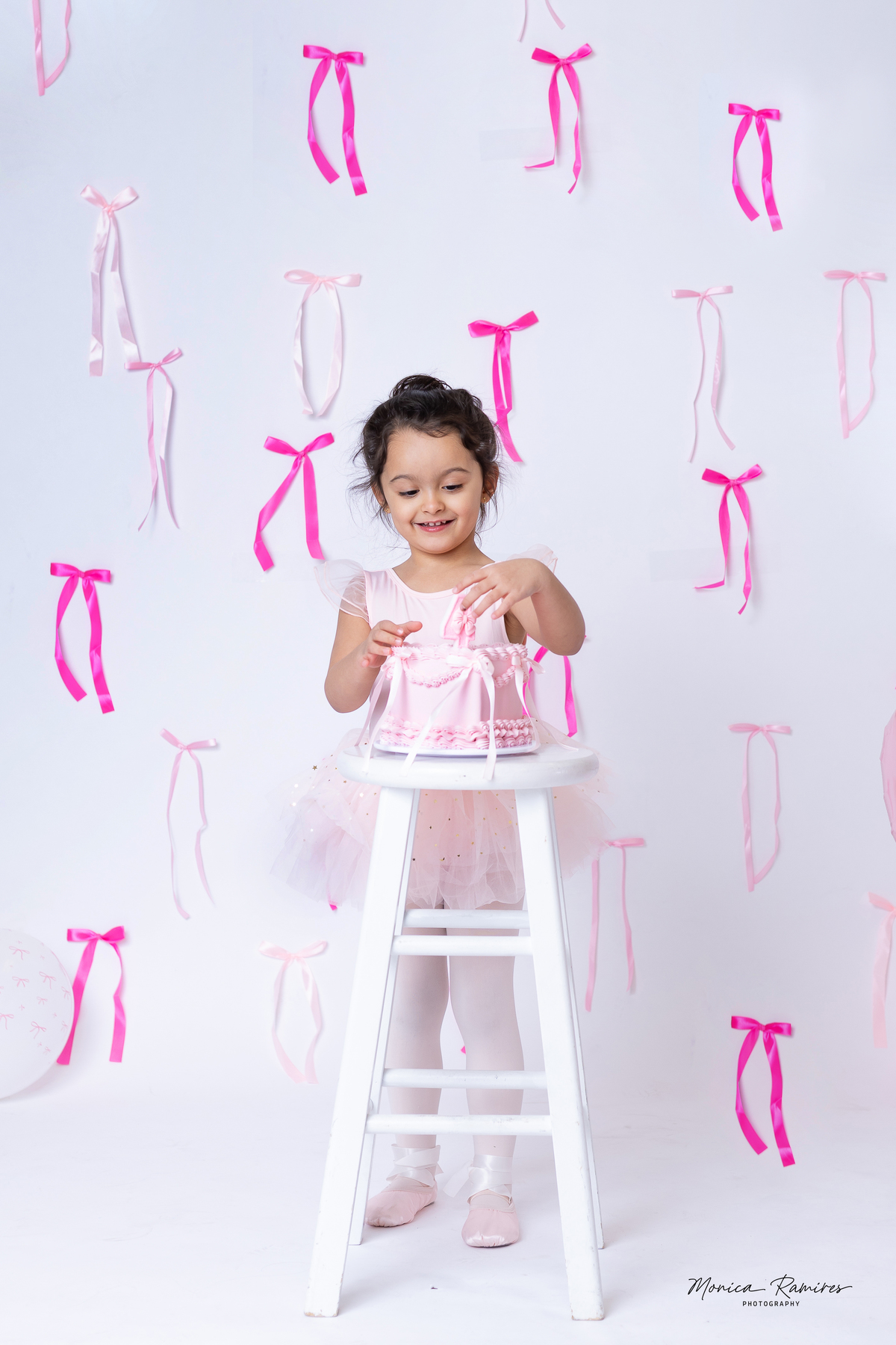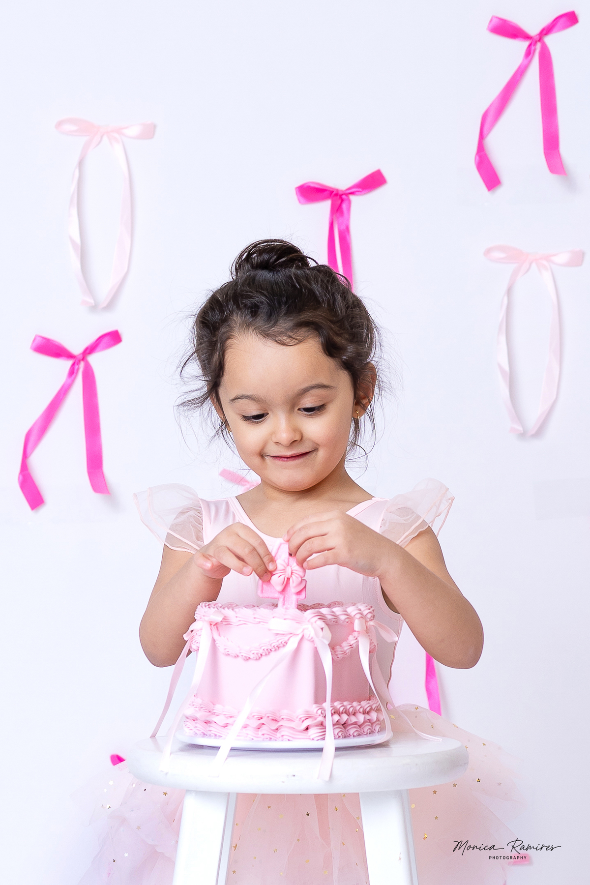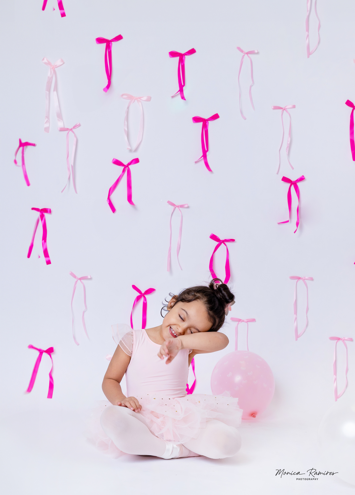 Geovana’s session felt like stepping into a charming little world, where every detail celebrated the lightness of childhood. Surrounded by pink bows, soft tones, and genuine smiles, she shined with pure sweetness.