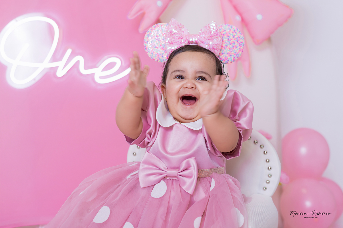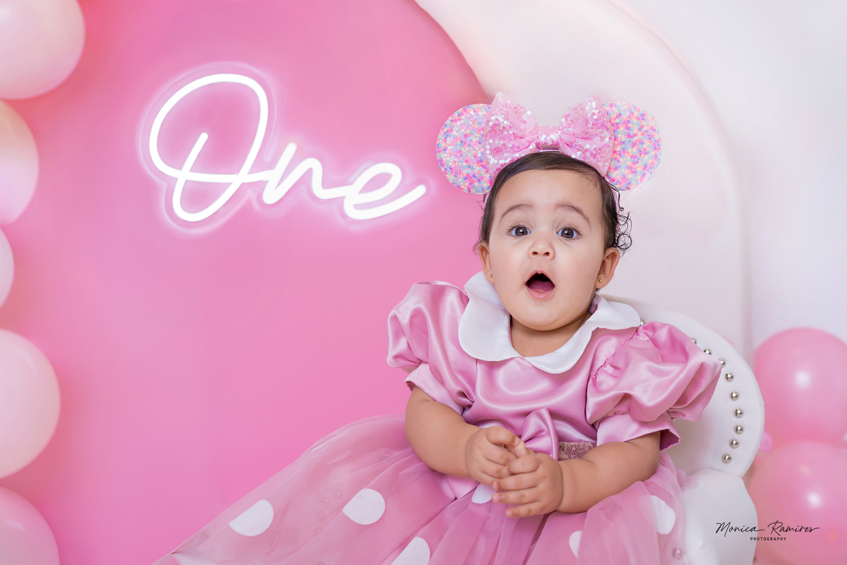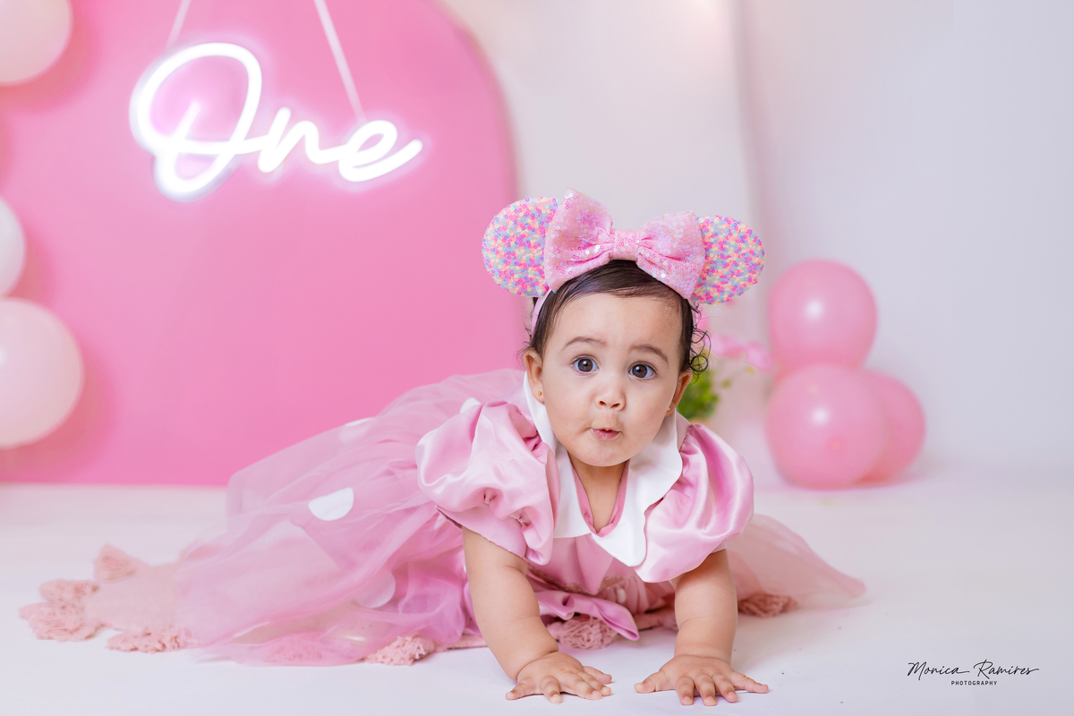 From the very beginning, she brought joy and personality to the session — full of smiles, curiosity, and those little expressions that make this stage so unforgettable. The pink tones, combined with the Minnie-inspired touches, made everything feel even more magical.